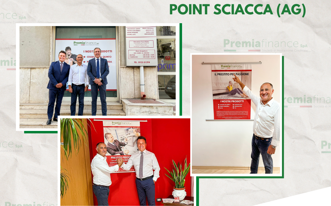 Premia Finance SpA, Società di Mediazione Creditizia guidata dall’Amministratore Delegato Gaetano Nardo, taglia ancora il nastro con il nuovo point brandizzato in Via F. Maglienti, 77 a Sciacca in provincia di Agrigento. Il point è guidato da Vincenzo Cucchiara, uno Specialist Quinto che vanta oltre quindici anni di esperienza nel mondo del credito. Presenti all’inaugurazione l’AD Gaetano Nardo e il Direttore Rete Girolamo Orlando. L’Amministratore Delegato dichiara: “La Nostra Società è lieta...